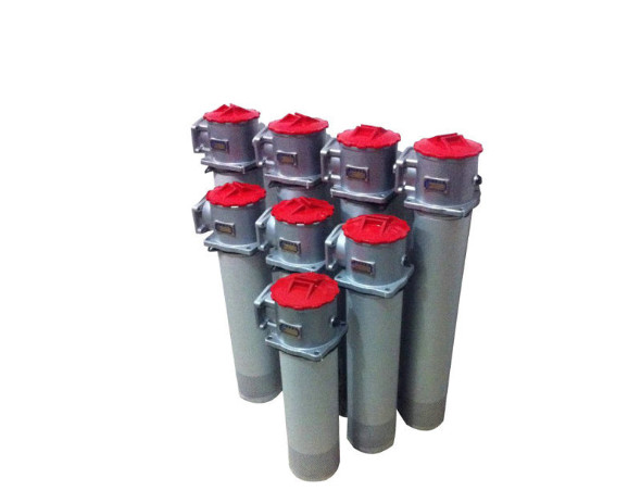 過濾器安裝在油箱頂部,筒體部分浸入油箱內(nèi),回油筒體浸入油箱內(nèi),進油口設(shè)有管式與法蘭式連接,從而簡化了系統(tǒng)管路,使系統(tǒng)布置較為緊湊,安裝連接方便。